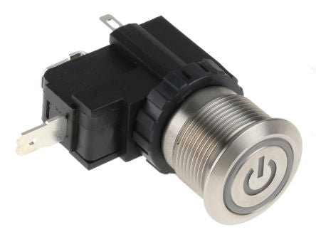 1-pole on-off switch Lock Push Button Switch, IP67, 19.1 Dia.mm, Panel Mount, Power Symbol, 250 / 125V ac; 175-8058