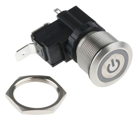 1-pole on-off switch Momentary Push Button Switch, IP67, 22.2 Dia.mm, Panel Mount, Power Symbol, 250 / 125V ac; 175-8175