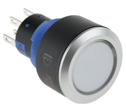 Double Pole Double Throw (DPDT) Lock Push Button Switch, IP65, 22.2 Dia.mm, Panel Mount, 250V ac; 175-8310