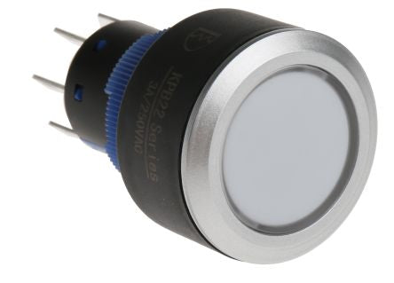Double Pole Double Throw (DPDT) Lock Push Button Switch, IP65, 22.2 Dia.mm, Panel Mount, 250V ac; 175-8329