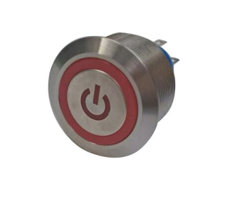 Double Pole Double Throw (DPDT) Lock Push Button Switch, IP67, 25.2 Dia.mm, Panel Mount, Power Symbol, 250V ac; 175-8357