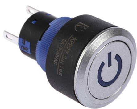 Single Pole Double Throw (SPDT) Lock Push Button Switch, IP65, 22.2 Dia.mm, Panel Mount, Power Symbol, 250V ac; 175-8386