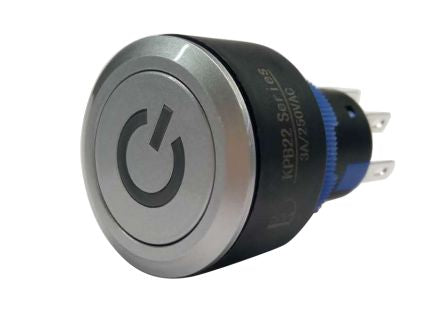Double Pole Double Throw (DPDT) Lock Push Button Switch, IP65, 22.2 Dia.mm, Panel Mount, Power Symbol, 250V ac; 175-8387