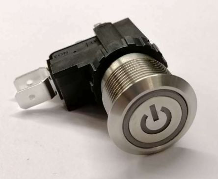 Single Pole Double Throw (SPDT) Momentary Push Button Switch, IP67, 19.1 Dia.mm, Panel Mount, Power Symbol; 175-8481