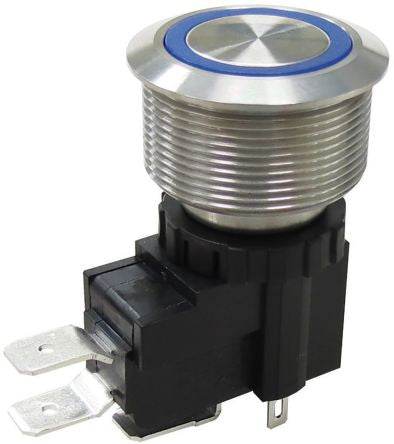 1-pole on-off switch Momentary Push Button Switch, IP67, 25.2 Dia.mm, Panel Mount, 250 / 125V ac; 175-8648
