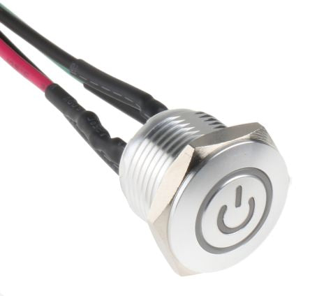 Push Button Switch, IP67, 16 Dia.mm, Panel Mount, Power Symbol, 36V dc; 175-8707