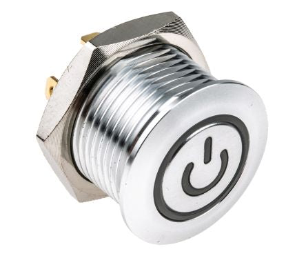 Push Button Switch, IP67, 16 Dia.mm, Panel Mount, Power Symbol, 36V dc; 175-8735