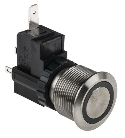1-pole on-off switch Momentary Push Button Switch, IP67, 22.2 Dia.mm, Panel Mount, 250 / 125V ac; 175-8785