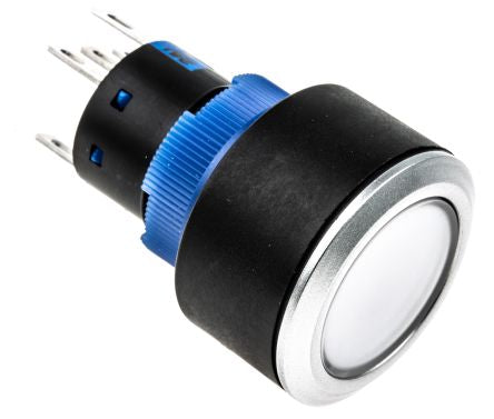 Single Pole Double Throw (SPDT) Lock Push Button Switch, IP65, 22.2 Dia.mm, Panel Mount, 250V ac; 175-8904