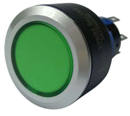 Double Pole Double Throw (DPDT) Lock Push Button Switch, IP65, 22.2 Dia.mm, Panel Mount, 250V ac; 175-8914