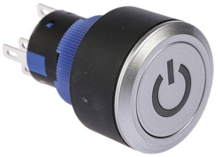 Single Pole Double Throw (SPDT) Momentary Push Button Switch, IP65, 22.2 Dia.mm, Panel Mount, Power Symbol, 250V ac; 175-8922