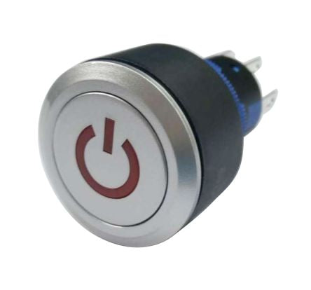 Double Pole Double Throw (DPDT) Momentary Push Button Switch, IP65, 22.2 Dia.mm, Panel Mount, Power Symbol, 250V ac; 175-9018