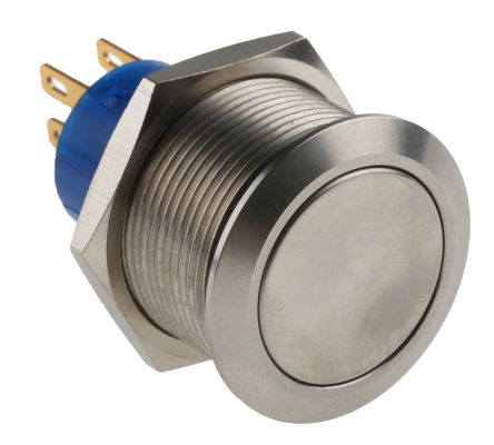 Double Pole Double Throw (DPDT) Lock Push Button Switch, IP67, 22.2 Dia.mm, Panel Mount, 250V ac; 175-9244