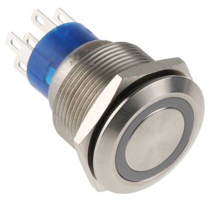 Double Pole Double Throw (DPDT) Momentary Push Button Switch, IP67, 22.2 Dia.mm, Panel Mount, 250V ac; 175-9248