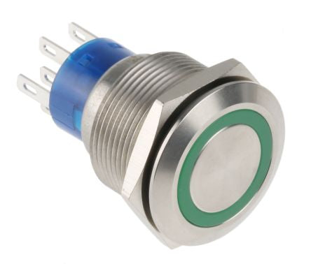Double Pole Double Throw (DPDT) Momentary Push Button Switch, IP67, 22.2 Dia.mm, Panel Mount, 250V ac; 175-9252