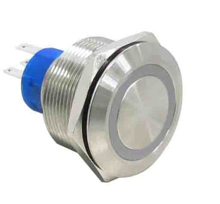 Single Pole Double Throw (SPDT) Momentary Push Button Switch, IP67, 25.2 Dia.mm, Panel Mount, 250V ac; 175-9255