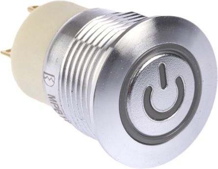 Lock Push Button Switch, IP67, 16 Dia.mm, Panel Mount, Power Symbol, 36V dc; 175-9293
