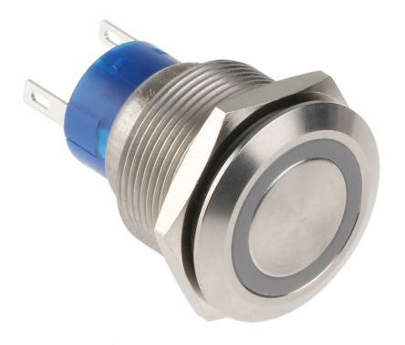 Single Pole Double Throw (SPDT) Lock Push Button Switch, IP67, 22.2 Dia.mm, Panel Mount, 250V ac; 175-9313