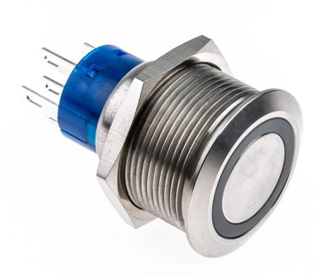 Single Pole Double Throw (SPDT) Lock Push Button Switch, IP67, 22.2 Dia.mm, Panel Mount, 250V ac; 175-9706