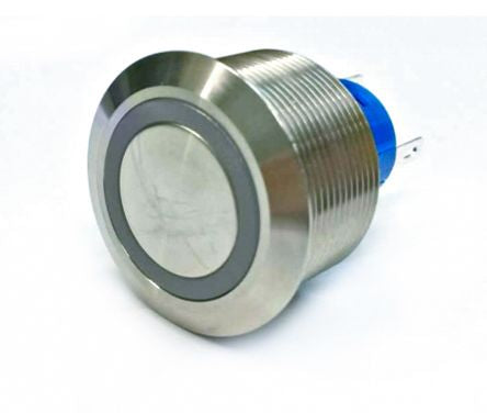 Single Pole Double Throw (SPDT) Lock Push Button Switch, IP67, 25.2 Dia.mm, Panel Mount, 250V ac; 175-9752