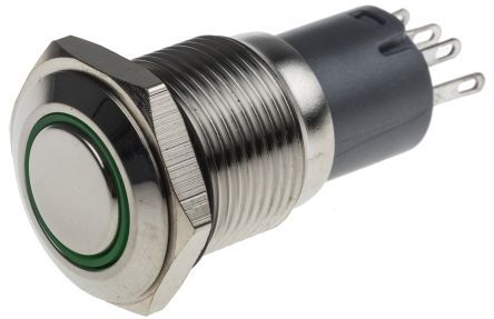 Single Pole Double Throw (SPDT) Latching Push Button Switch, IP65, IP67, 16 (Dia.)mm, Panel Mount, 250V ac; 811-8405