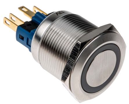 Single Pole Double Throw (SPDT) Latching Push Button Switch, IP65, IP67, 22 (Dia.)mm, Panel Mount, 12V; 811-8483