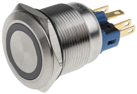 Single Pole Double Throw (SPDT) Latching Push Button Switch, IP65, IP67, 22 (Dia.)mm, Panel Mount, 250V ac; 811-8487