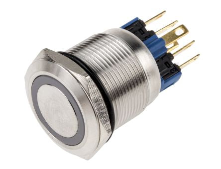 Single Pole Double Throw (SPDT) Latching Push Button Switch, IP65, IP67, 22 (Dia.)mm, Panel Mount, 250V ac; 811-8516