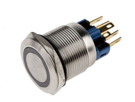 Single Pole Double Throw (SPDT) Latching Push Button Switch, IP65, IP67, 22 (Dia.)mm, Panel Mount, 250V ac; 811-8528