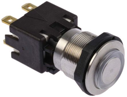 Double Pole Double Throw (DPDT) Latching Push Button Switch, IP64, 19 mm, Panel Mount [1241.6824.1124000]; 436-862