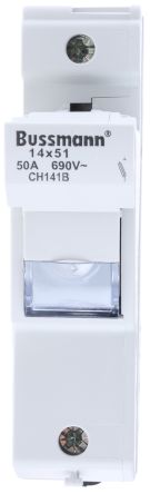 Cooper Bussmann 50A Rail Mount Fuse Holder for 14 x 51mm Fuse, 690V ac [CH141DU]; 765-2914