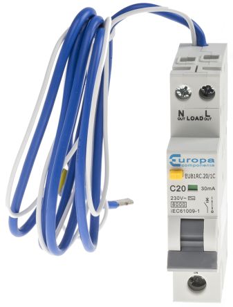 1P 6 kA 20 A RCBO, DIN Rail Mount, Trip Sensitivity 30mA EUB1R [EUB1RC.20/1C]; 153-3450