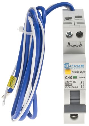 1P 6 kA 40 A RCBO, DIN Rail Mount, Trip Sensitivity 30mA EUB1R [EUB1RC.40/1C]; 153-3454