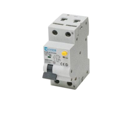 2P 6 kA 16 A RCBO, DIN Rail Mount, Trip Sensitivity 30mA EUBLM [EUBLMC16C30A]; 153-3459