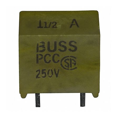Cooper Bussmann 1.5A Radial F Leaded PCB Mount Fuse, 250 V ac, 450 V dc [PCC-1-1-2-R]; 852-7193