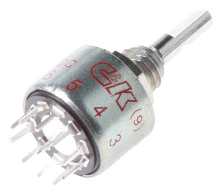 C & K, 5 Position SP Rotary Switch, 250 mA@ 125 V ac, 250 mA@ 28 V dc, 6 A@ 125 V ac, 6 A@ 28 V dc, PC Terminal [MA05L1NCQD]; 793-1718