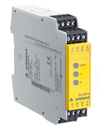 Wieland 24 V ac/dc Safety Relay Dual Channel With 3 Safety Contacts and 1 Auxilary Contact [R1.188.1440.0]; 122-2498