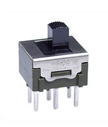 PCB Slide Switch Double Pole Double Throw (DPDT) Latching 3 A @ 250 V ac, 6 A @ 125 V ac Top [MS22ANW03]; 125-1857