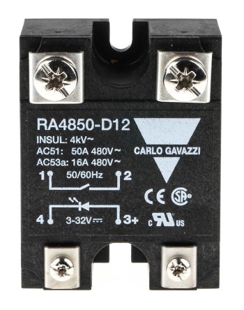 Carlo Gavazzi 50 A Solid State Relay, Zero, Panel Mount, 530 V ac Maximum Load [RA4850-D12]; 856-8383