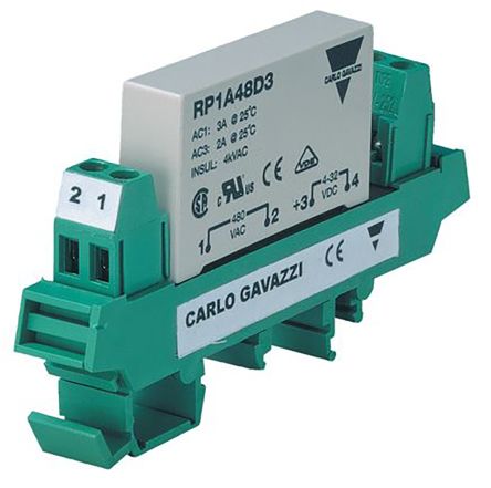 Carlo Gavazzi 3 A Solid State Relay, Zero Crossing, DIN Rail, 265 V ac Maximum Load [RP1A23D3M1]; 859-3046