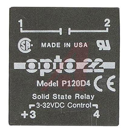 Opto 22 4 A Solid State Relay, AC, PCB Mount, 120 V ac Maximum Load [P120D4]; 888-8350
