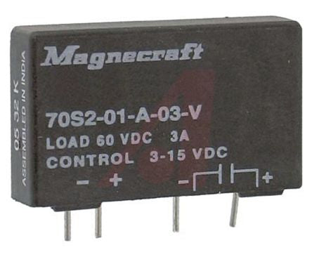 Schneider Electric 3 A SPNO Solid State Relay, DC, PCB Mount, MOSFET, 60 V dc Maximum Load [70S2-01-A-03-V]; 814-8181