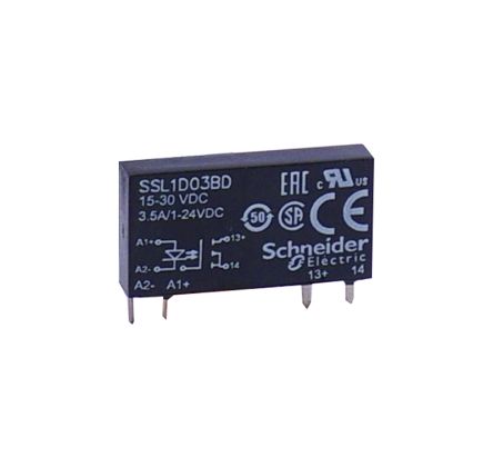 Schneider Electric 3.5 A SPNO Solid State Relay, DC Switching, PCB Mount, MOSFET, 24 V dc Maximum Load [SSL1D03BD]; 922-1837