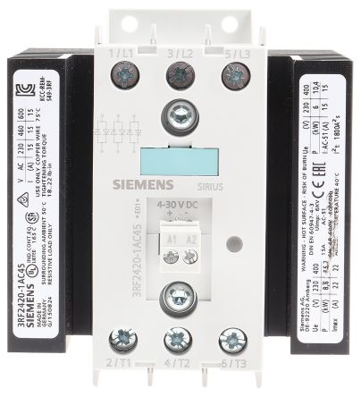 Siemens 20 A 3P-NO Solid State Relay, Zero Crossing, DIN Rail, Thyristor, 600 V Maximum Load [3RF2420-1AC45]; 612-9028