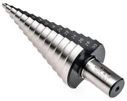 RS PRO HSS 4 → 30mm Step Drill Bit, 14 Steps, 3mm Max Drilling Thickness; 232-563