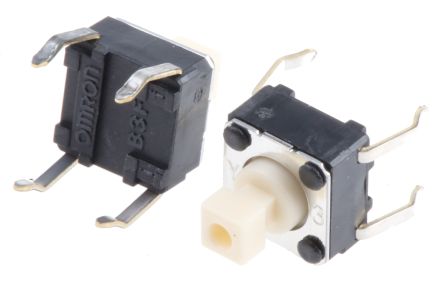 White Plunger Tactile Switch, SPST-NO 50 mA @ 24 V dc 3mm [B3F-1050]; 686-6856