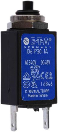 ETA 1A 1 Pole Thermal Magnetic Circuit Breaker, 48 V dc, 250 V ac 106-P30 [106-P30-000040-1A]; 336-012