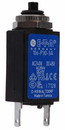 ETA 3A 1 Pole Thermal Magnetic Circuit Breaker, 48 V dc, 250 V ac 106-P30 [106-P30-000040-3A]; 335-980