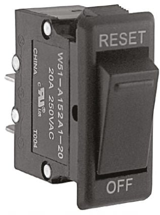 TE Connectivity 20A 1 Pole Thermal Magnetic Circuit Breaker, 250V ac W51 [W51-A152A1-20]; 782-8066