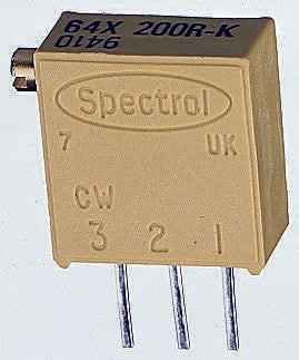 Vishay 64X Series 19 (Electrical), 22 (Mechanical)-Turn Through Hole Trimmer Resistor with Pin Terminations, 200Ω ±10% [M64X201KB40]; 154-2189
